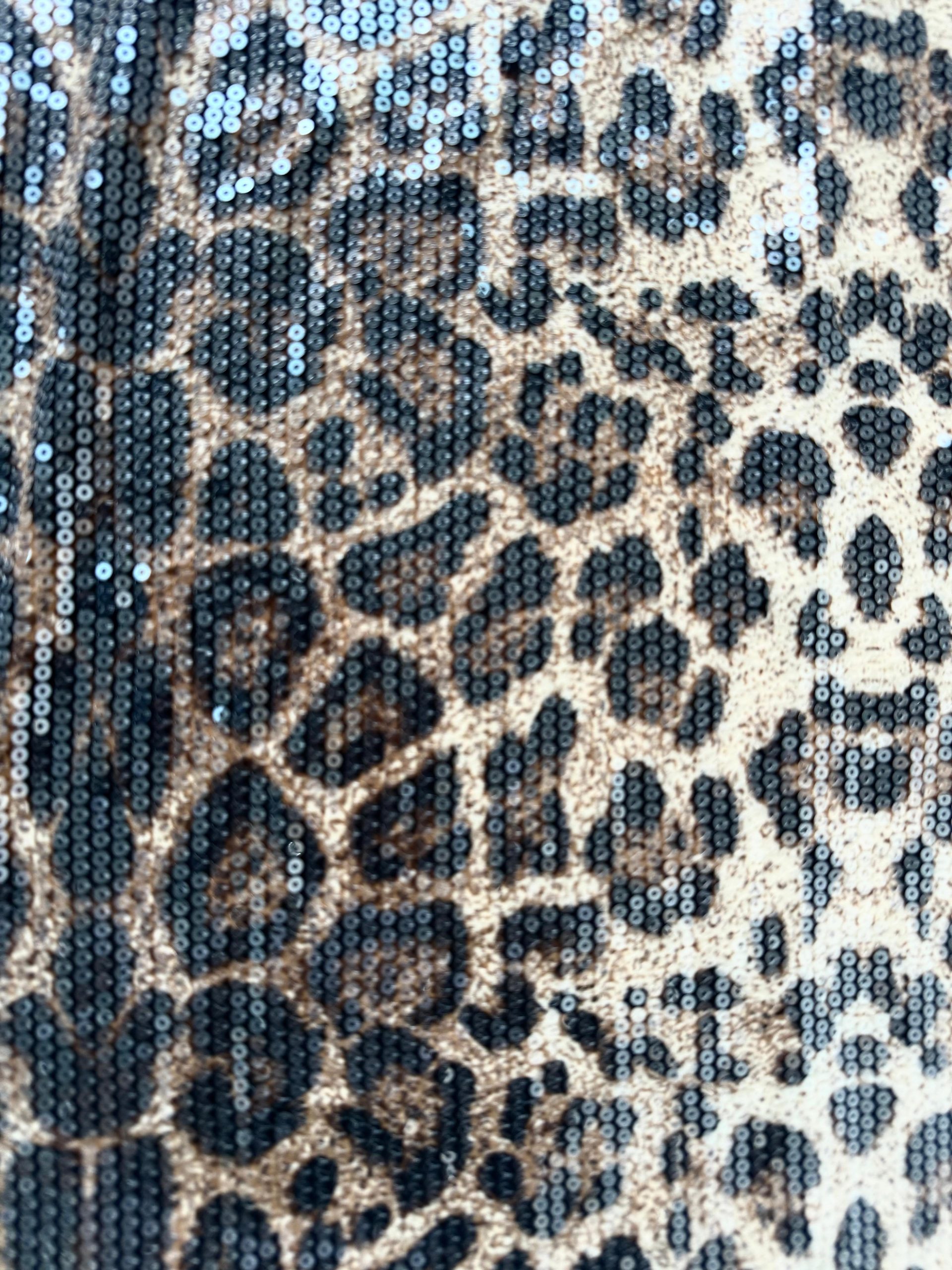 Sydney Elbise | Leopar Payetli, Yüksek Yaka Uzun Elbise